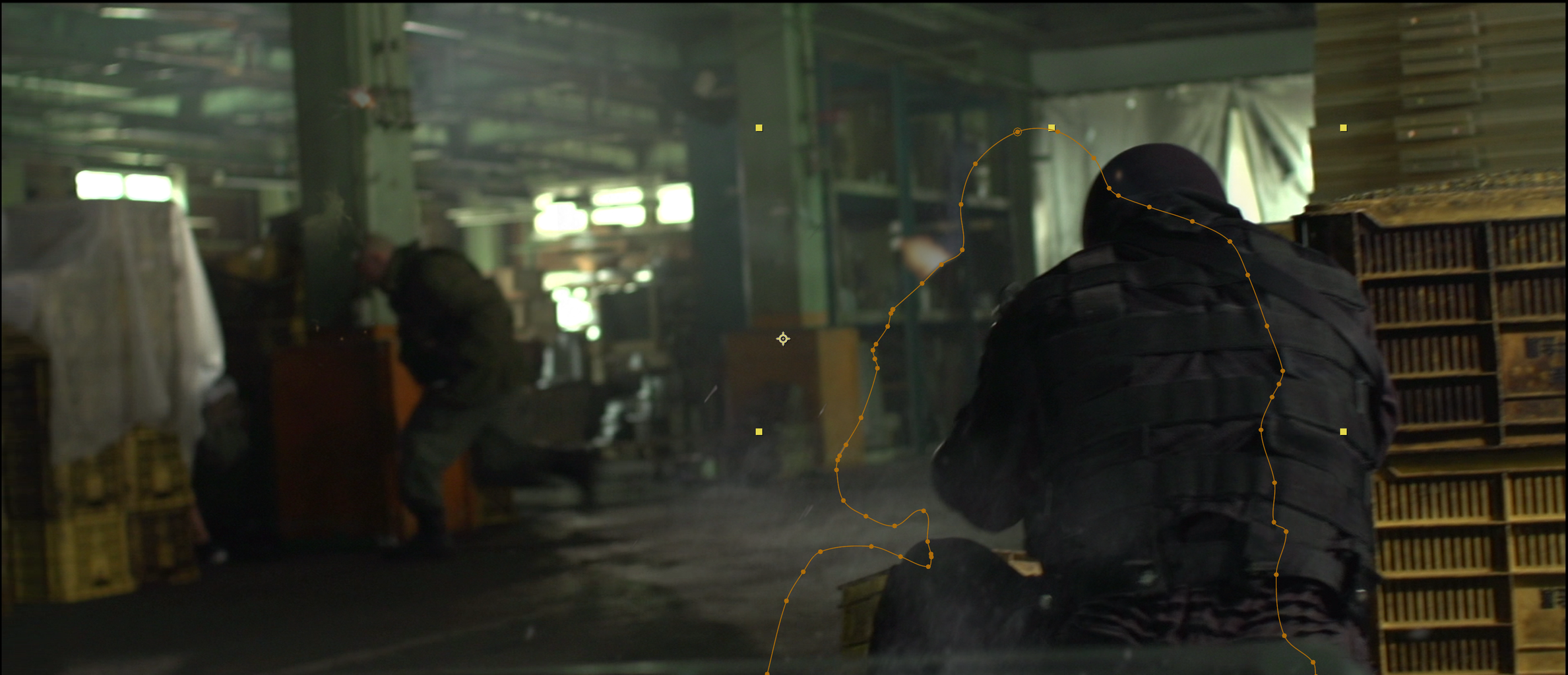 ちなみに、手前の箱に銃弾があたった演出をするために、手前の箱も切り抜く必要があるのですがこう言ったグネグネ動かないものに関しては割りとオートマチックで行けるので楽なもんです。
